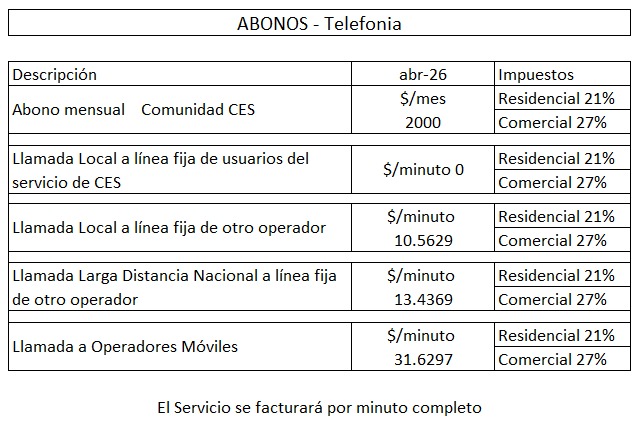 Llamadas locales desde tu linea fija, a otra linea de CES, bonificadas el 100%